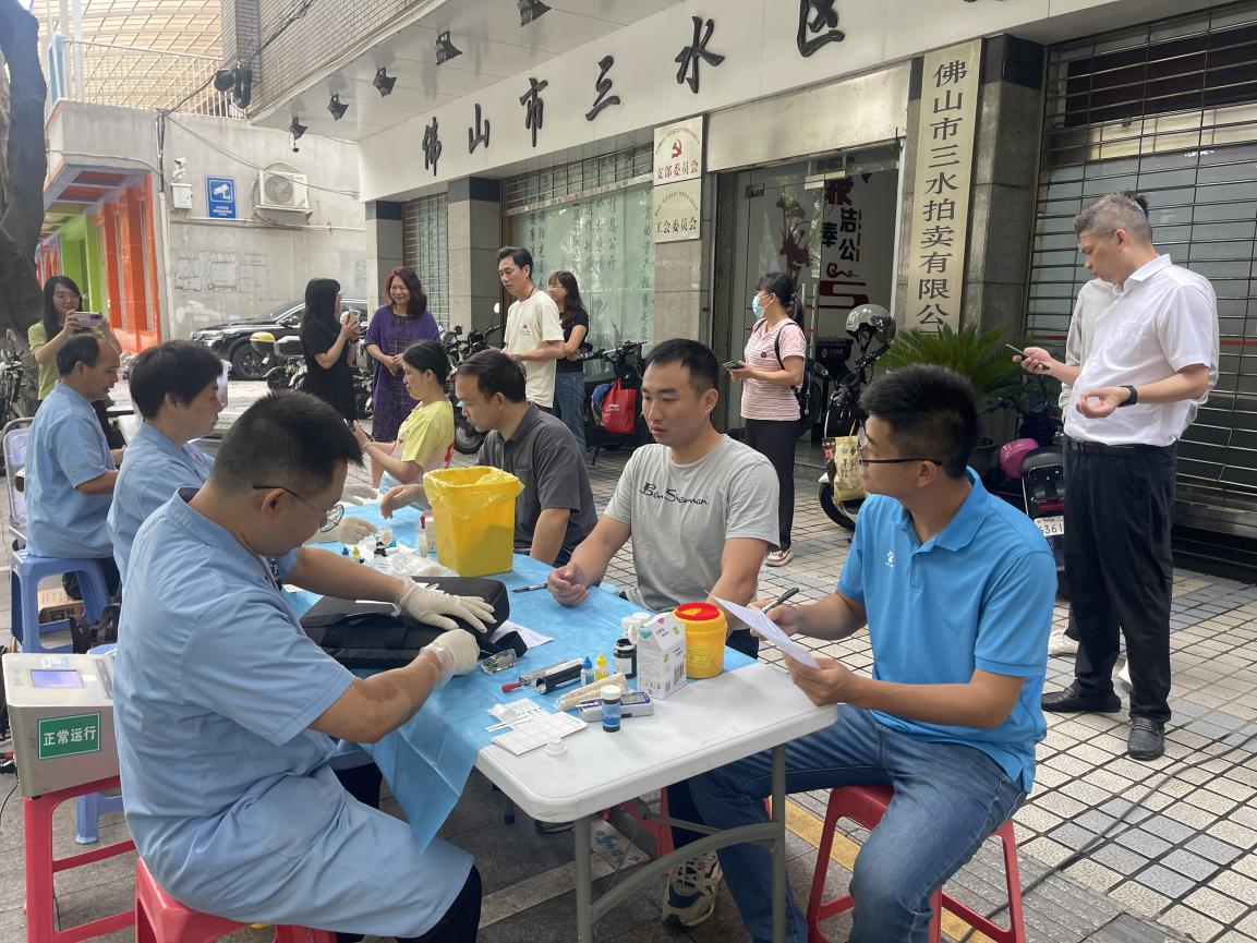 上午8点45分,血站工作人员已来到公司门前开展有关的准备工作。今天的天气清凉舒适,大家的献血热情很高涨,现场气氛十分热烈。在医护人员的引导下,大家填写献血登记表、测量血压、抽血化验,现场有条不紊、秩序井然。