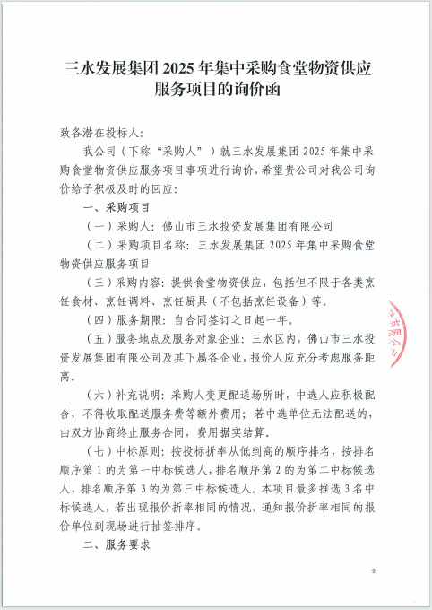 bv1946伟德官网集团2025年集中采购食堂物资供应服务项目询价