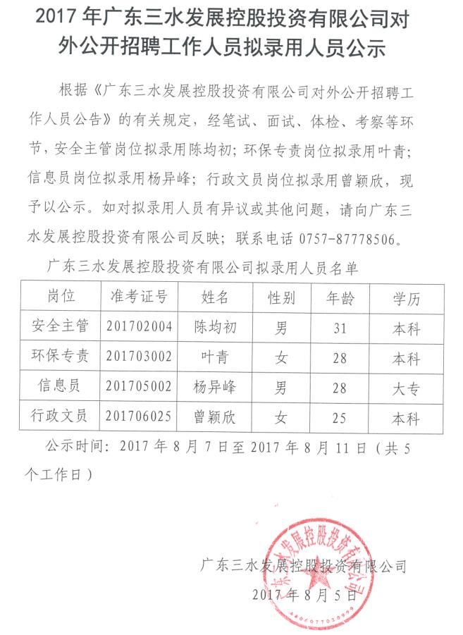 2017年1946伟德官方网站对外公开招聘工作人员拟录用人员公示