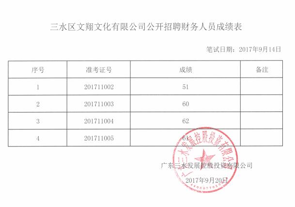 三水区文翔文化有限公司公开招聘财务人员成绩公示