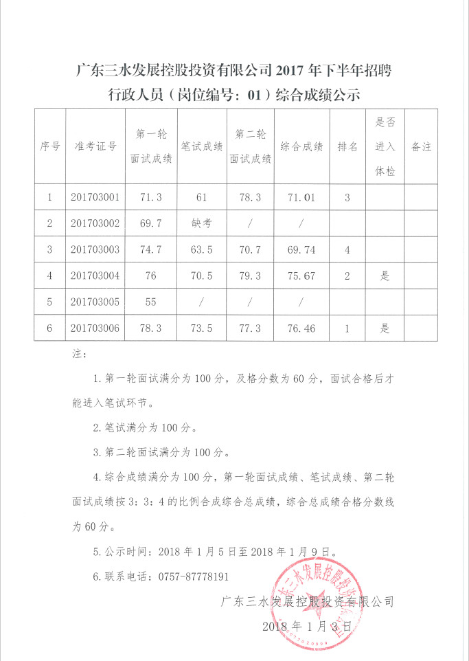 1946伟德官方网站2017年下半年招聘行政人员(岗位编号:01)综合成绩公示