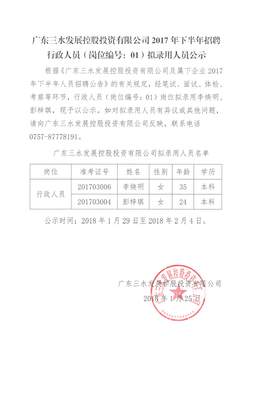 1946伟德官方网站2017年下半年招聘行政人员(岗位编号:01)拟录用人员公示