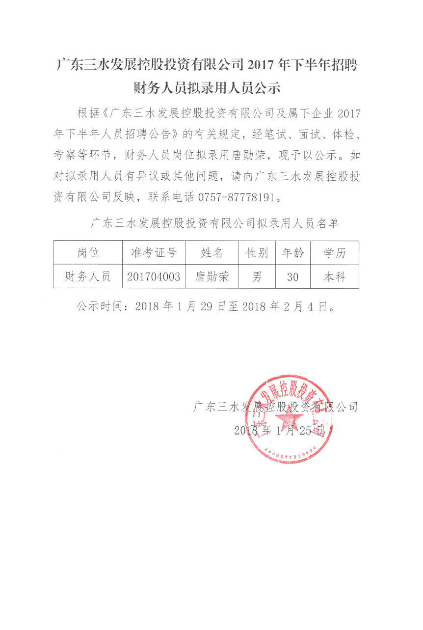 1946伟德官方网站2017年下半年招聘财务人员拟录用人员公示