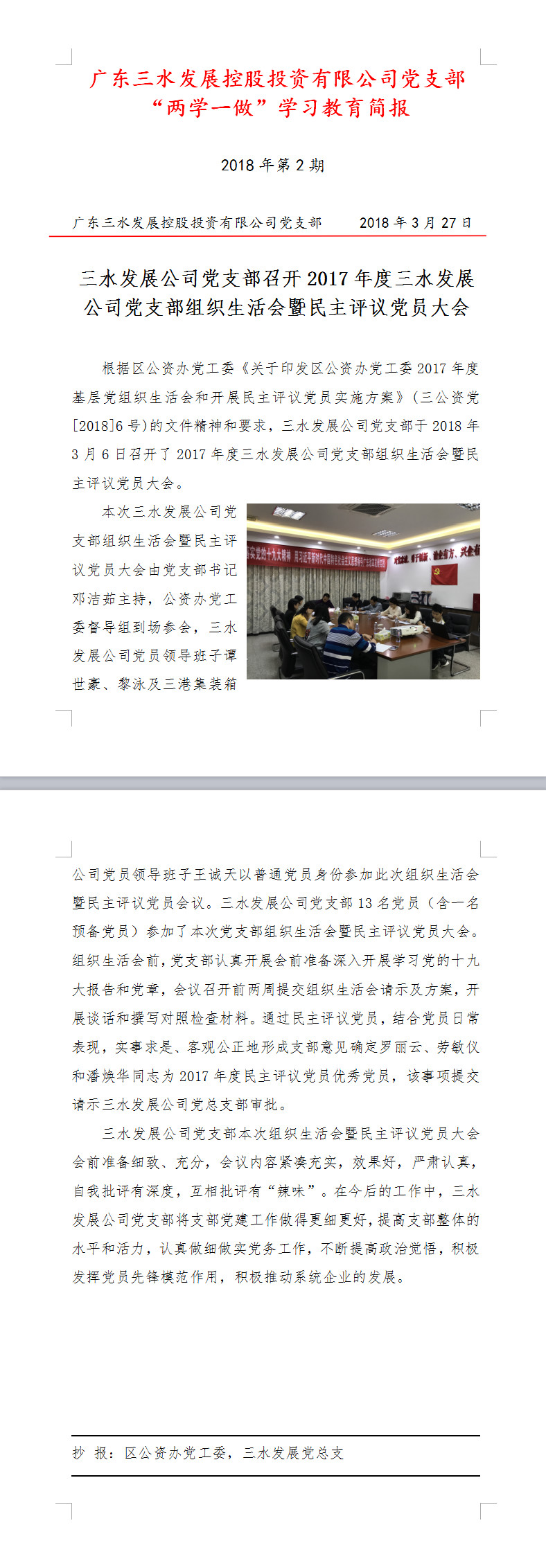 bv1946伟德官网公司党支部“两学一做”学习教育简报第2期——召开2017年度bv1946伟德官网公司党支部组织生活会暨民主评议党员大会