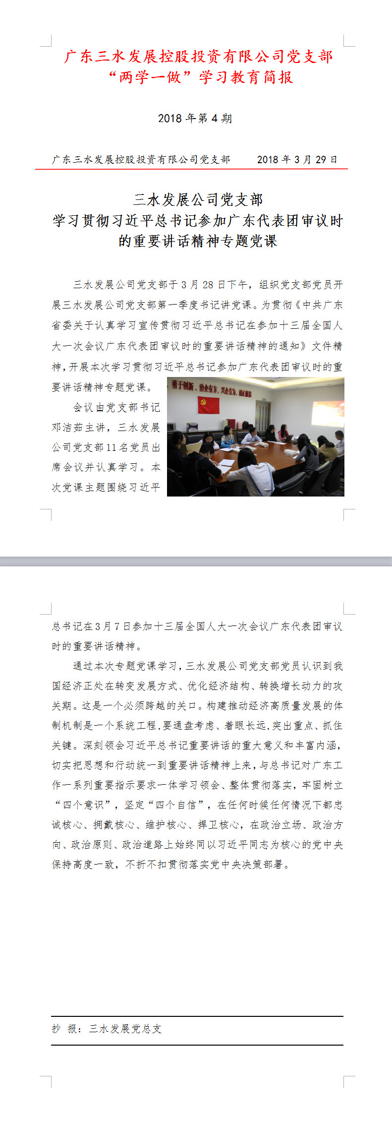 bv1946伟德官网公司“两学一做”学习教育简报第4期——学习贯彻习近平总书记参加广东代表团审议时的重要讲话精神专题党课