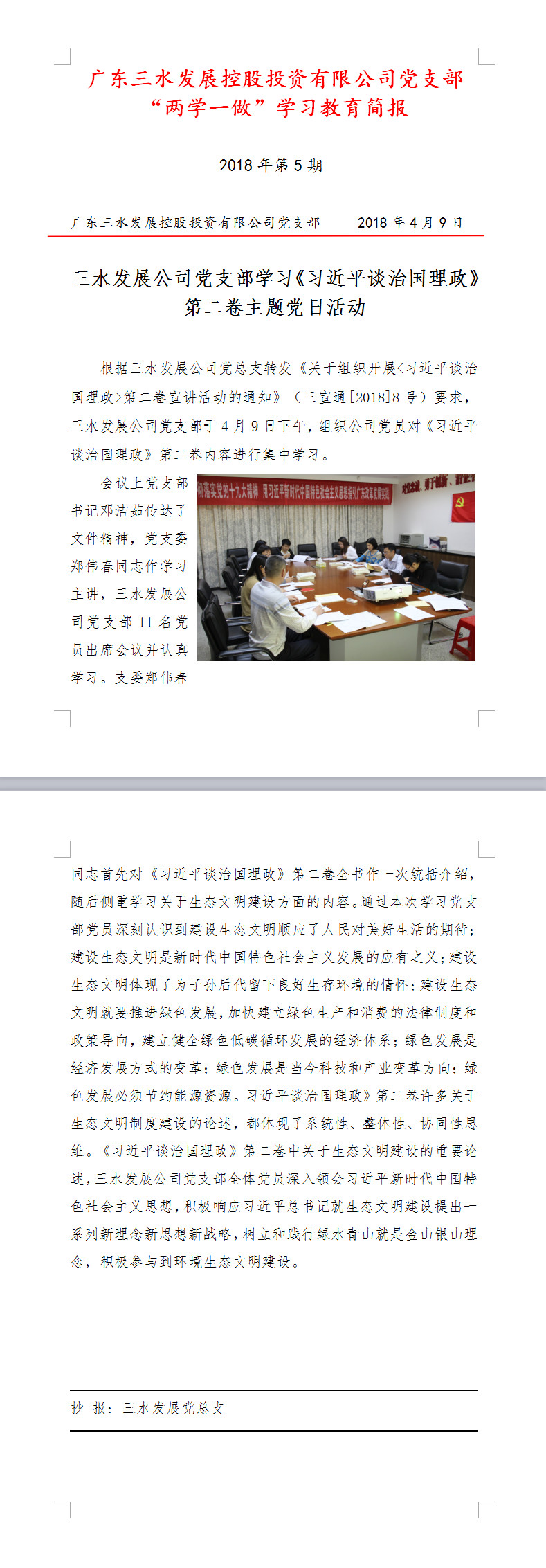 bv1946伟德官网公司“两学一做”学习教育简报第5期——学习《习近平谈治国理政》第二卷主题党日活动