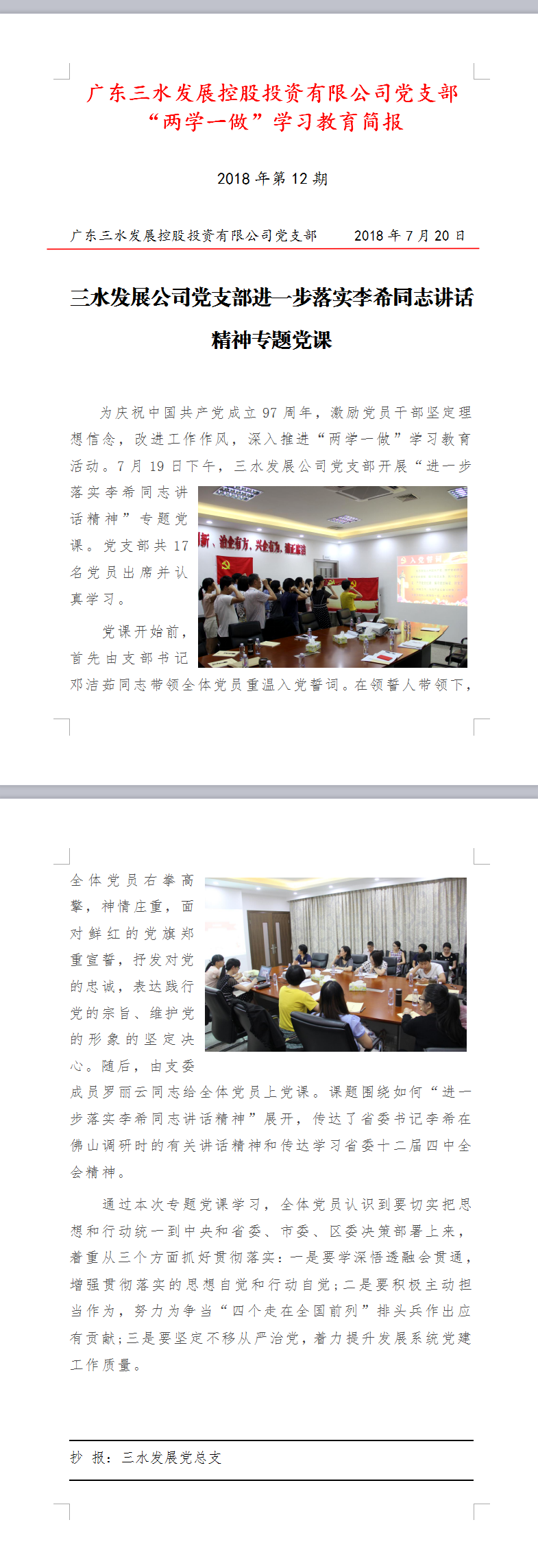 第12期简报20180719(进一步落实李希讲话精神专题党课)
