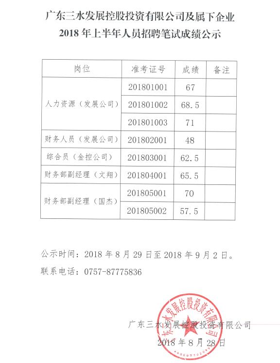 1946伟德官方网站及属下企业2018年上半年人员招聘笔试成绩公示