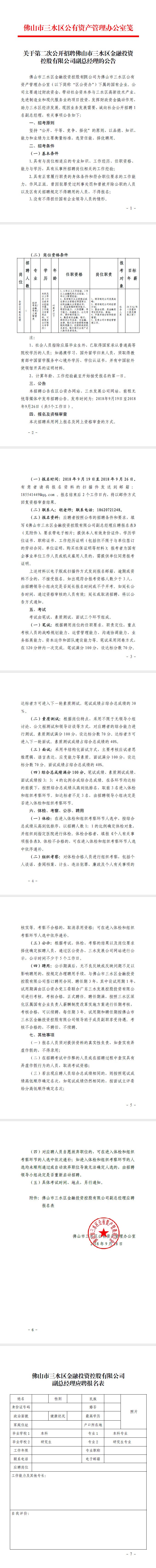 关于第二次公开招聘佛山市三水区金融投资控股有限公司副总经理的公告