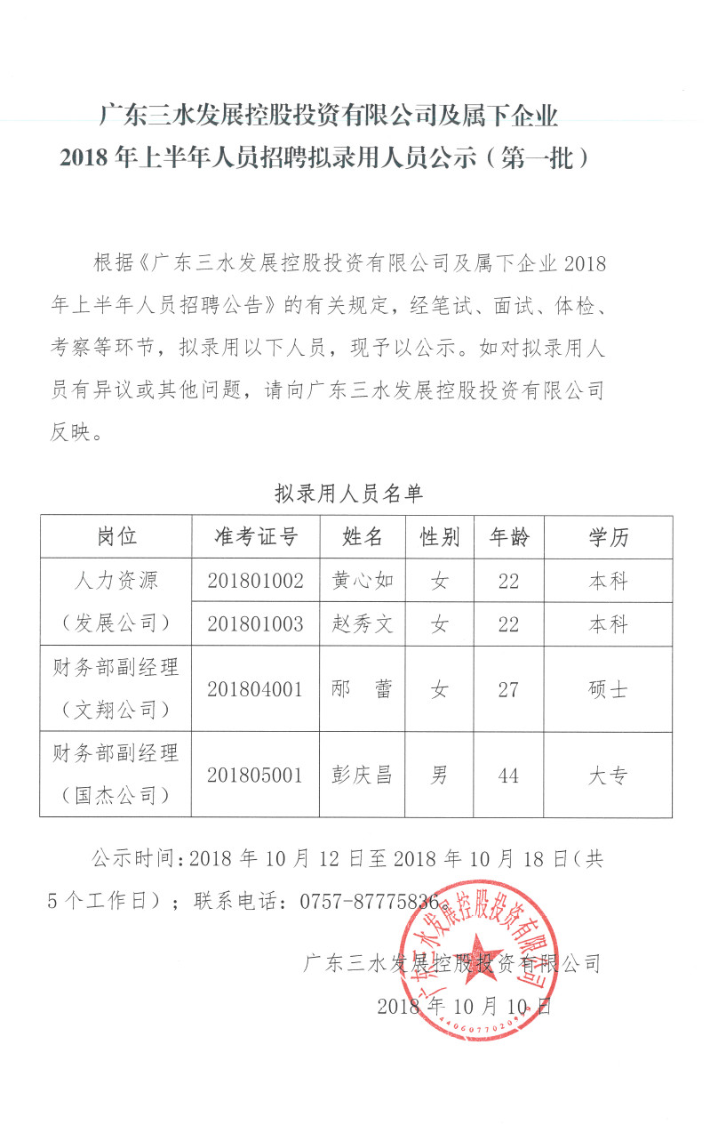 1946伟德官方网站及属下企业2018年上半年人员招聘拟录用人员公示(第一批)