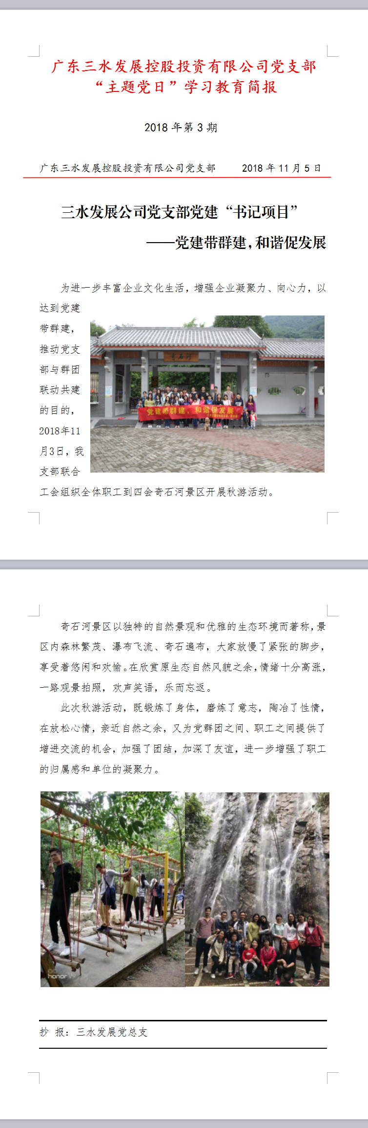 第3期主题党日工作简报20181103(奇石河秋游活动)