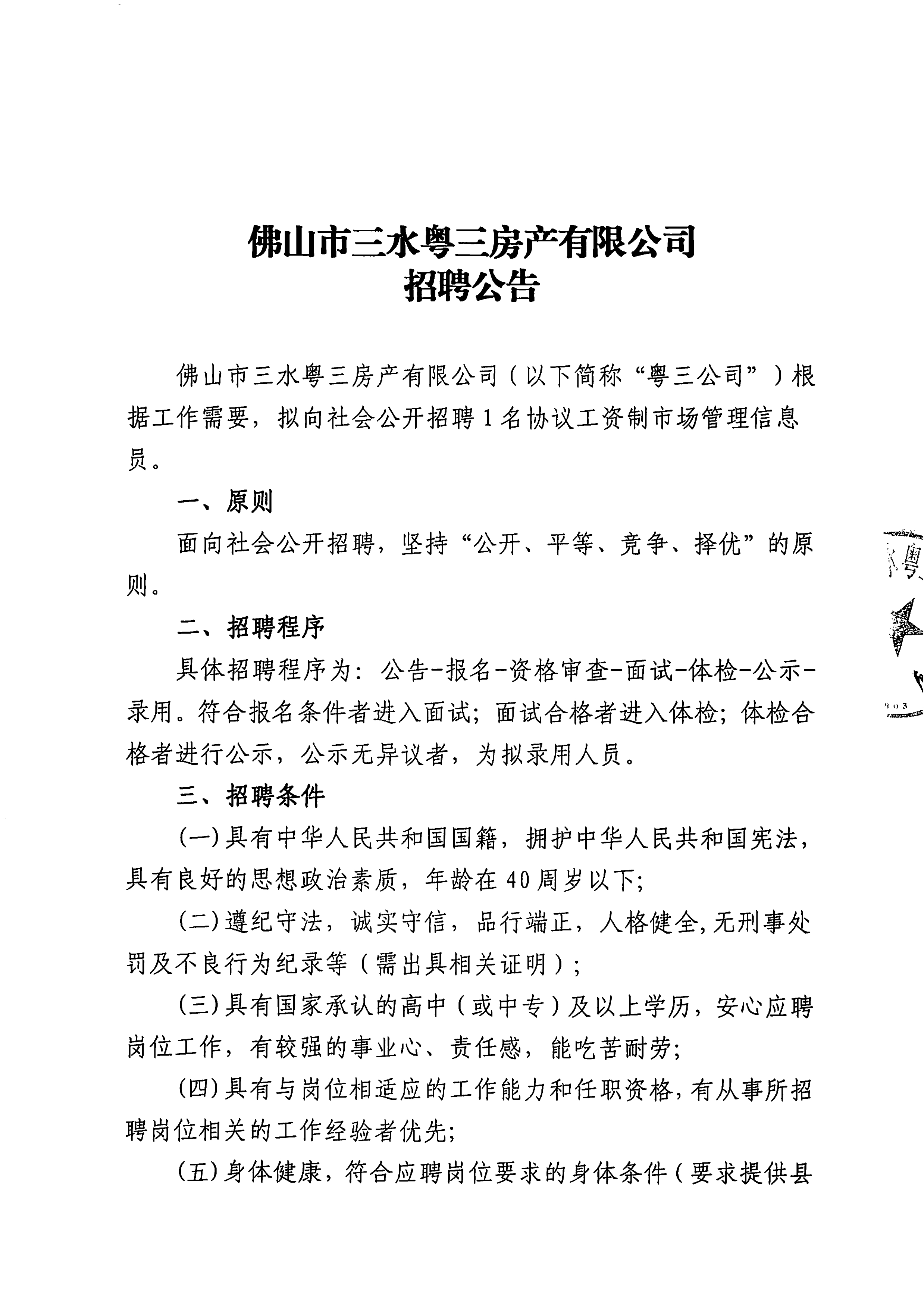 附件:佛山市三水粤三房产有限公司招聘人员报名表