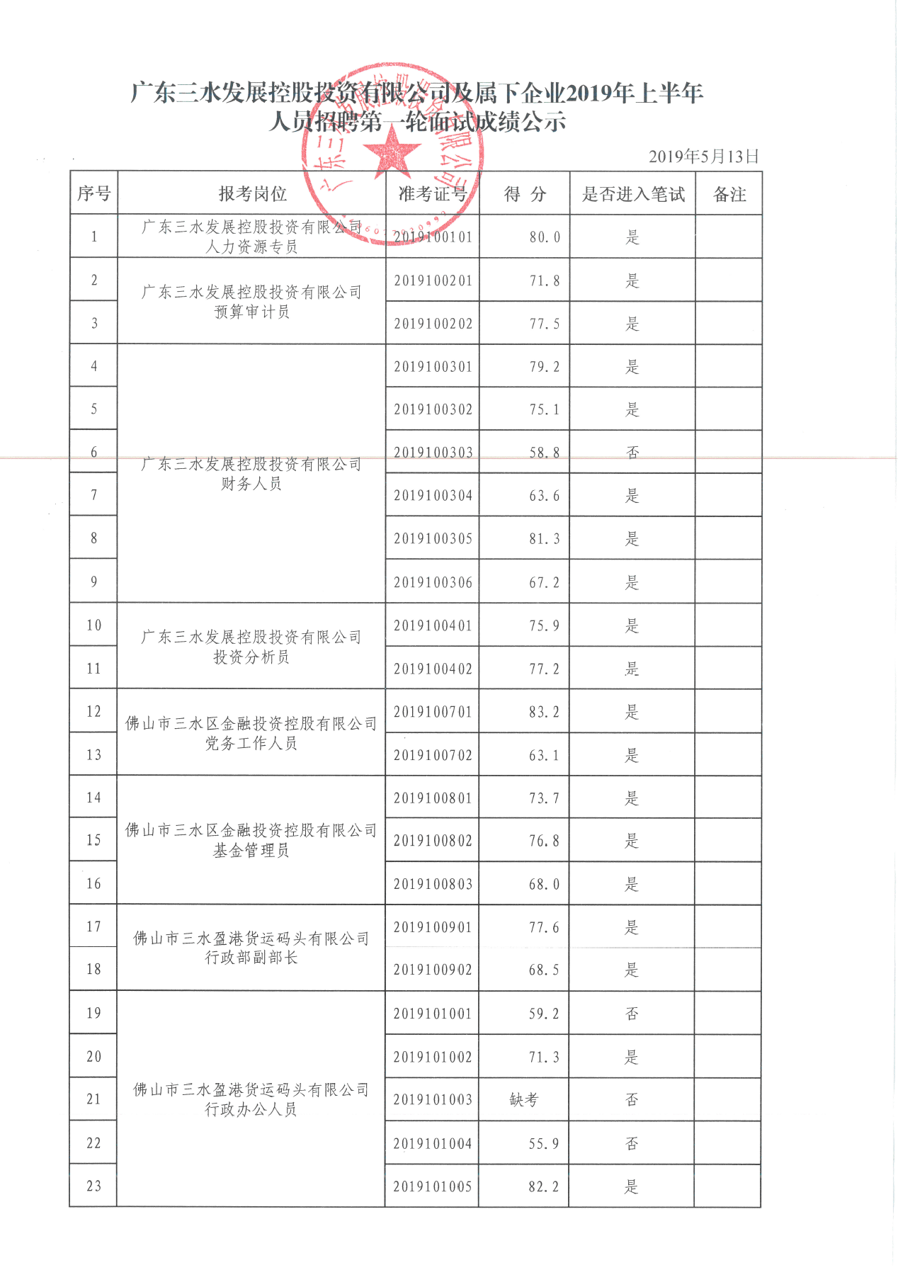 1946伟德官方网站及属下企业2019年上半年人员招聘第一轮面试成绩公示