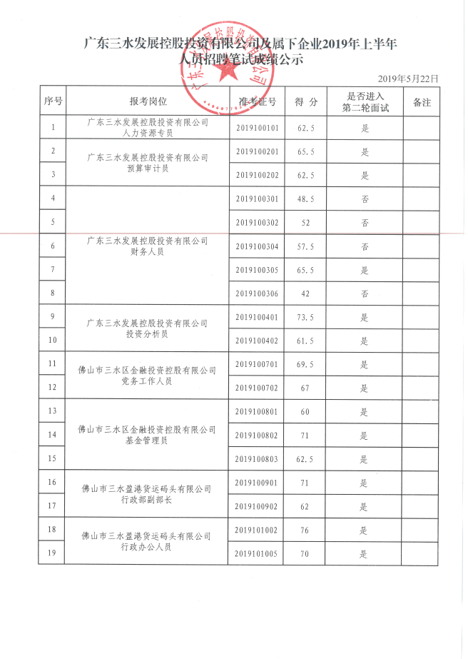 1946伟德官方网站及属下企业2019年上半年人员招聘笔试成绩公示