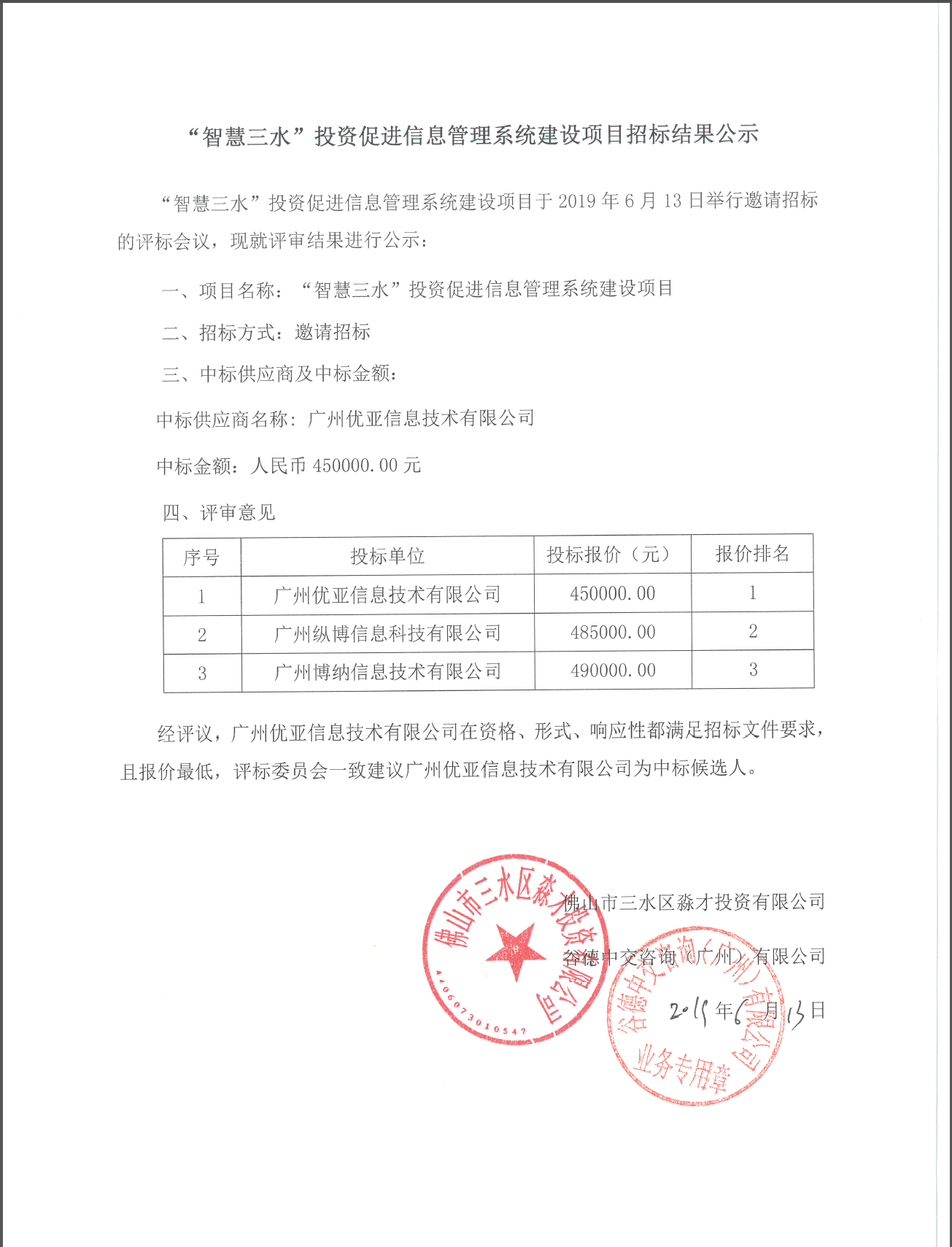 “智慧三水”投资促进信息管理系统建设项目招标结果公示