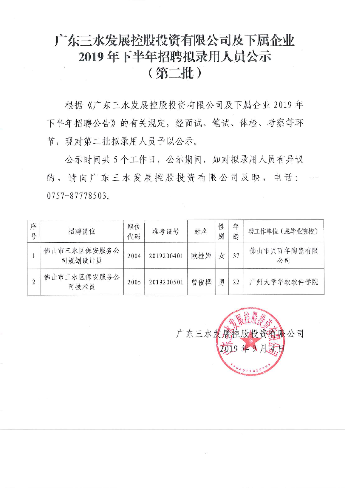 1946伟德官方网站及下属企业2019年下半年招聘拟录用人员公示(第二批)