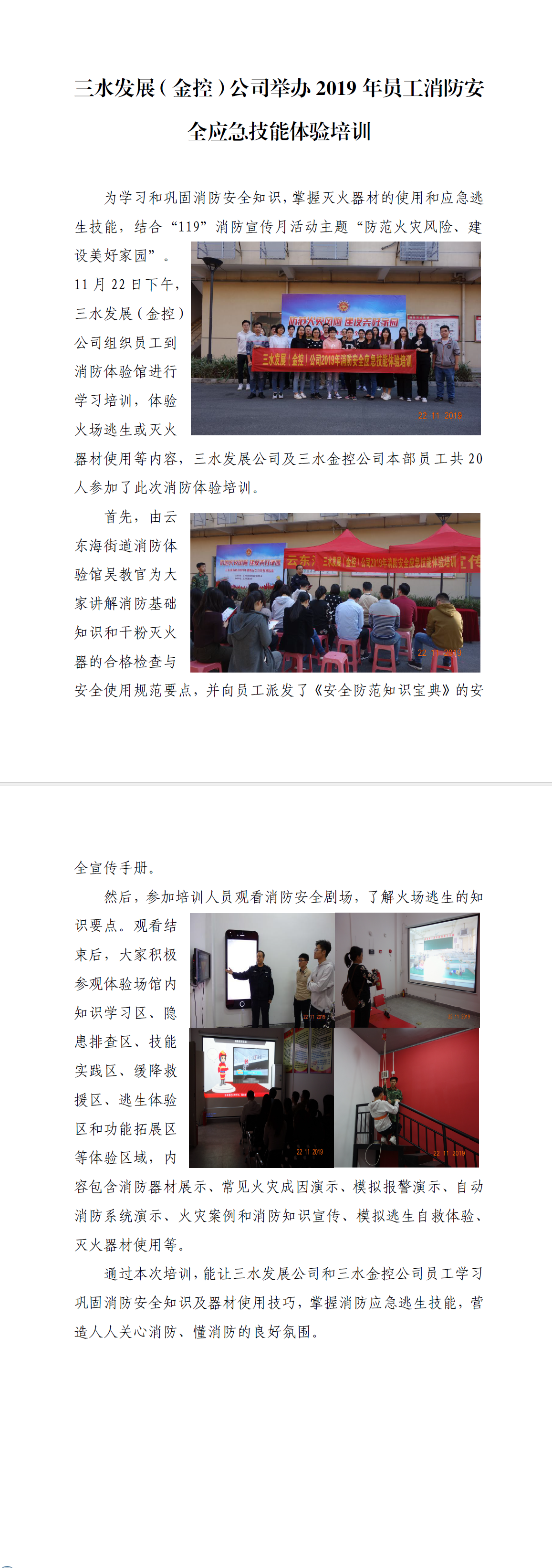bv1946伟德官网(金控)公司举办2019年员工消防安全应急技能体验培训