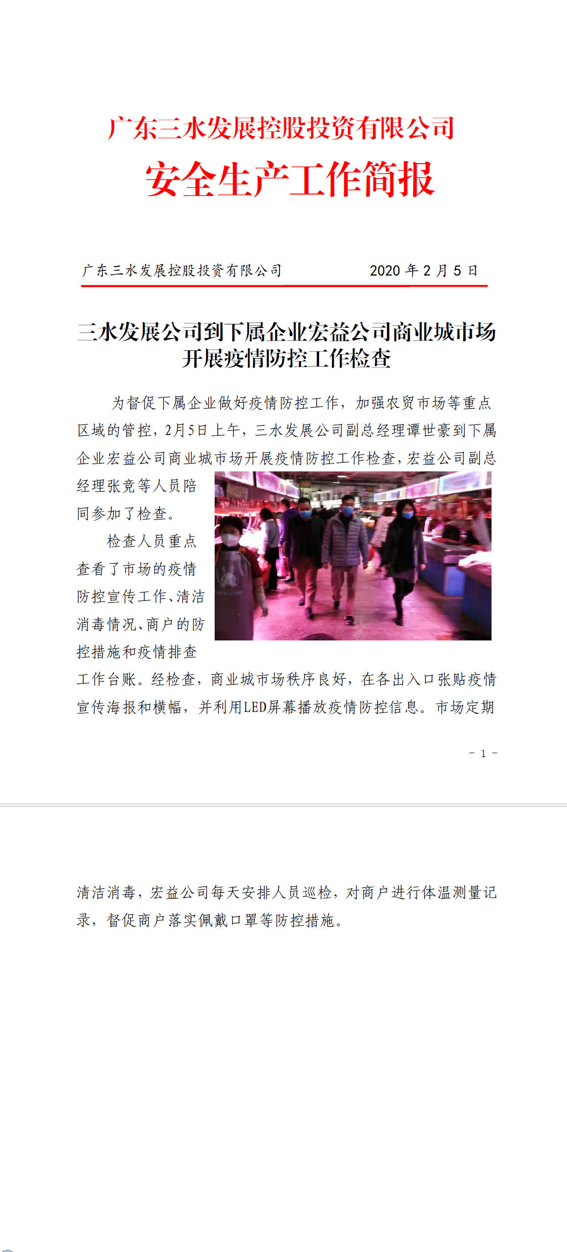 bv1946伟德官网安全生产工作简报(bv1946伟德官网公司到下属企业宏益公司商业城市场开展疫情防控工作检查)