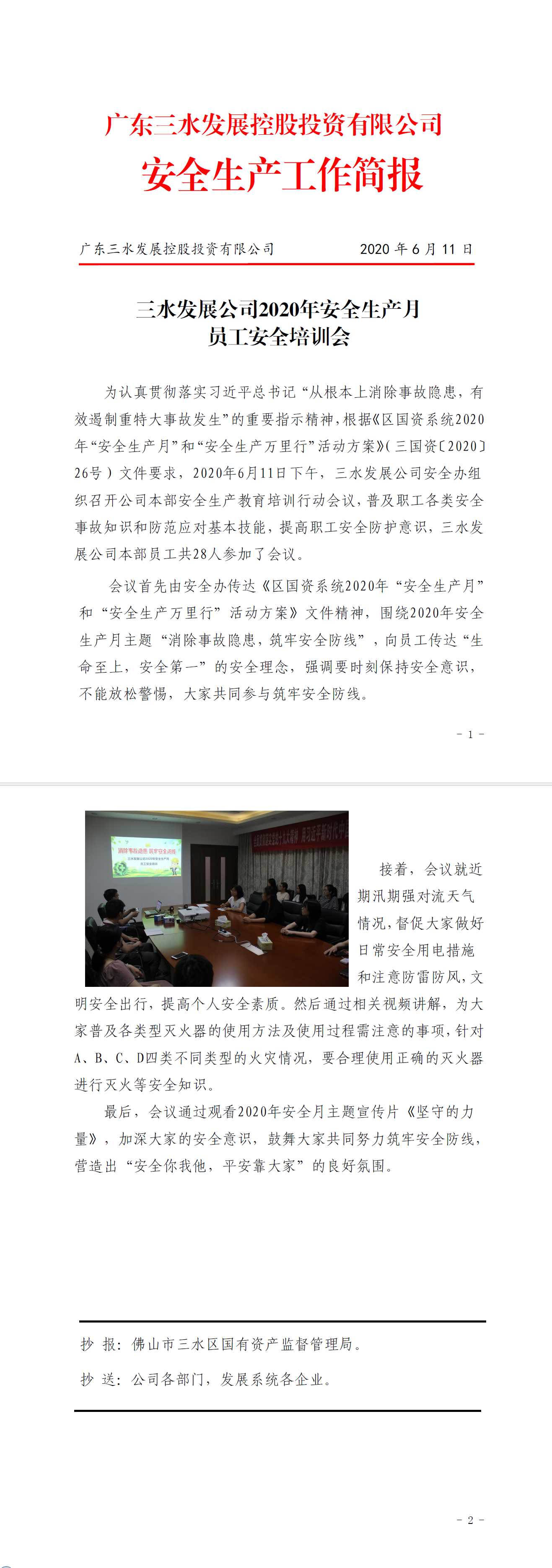 bv1946伟德官网安全生产工作简报2020年第7期(bv1946伟德官网公司2020年安全生产月员工安全培训会)