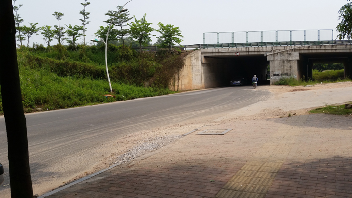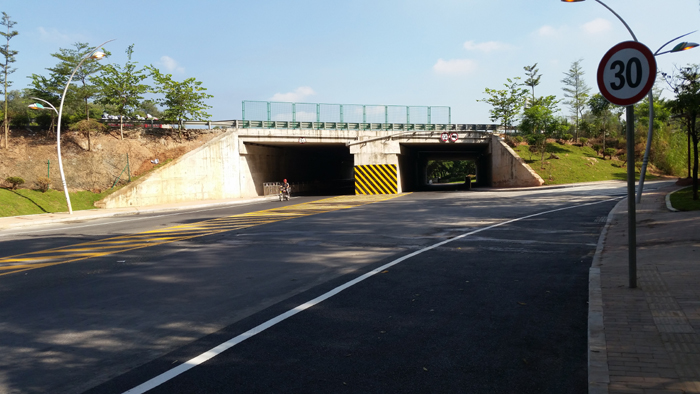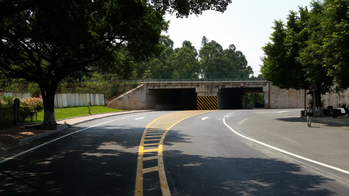 三水区口岸大道下穿广三高速道路改造工程位于佛山市三水区云东海街道内,路线起于三水森林公园南门入口处,下穿广三高速。路线由北向南,其中施工范围为:左幅K0+038~K0+230.1,右幅K0+038~K0+228.6。路线全长约192m,维持原有道路等级,设计车速30km/h,采用沥青混凝土路面。本工程主要开通下穿道路东侧道路,建设内容包括道路、排水、交通、照明工程,总投资约96万元。项目开工日期为2014年7月25日,于2014年9月27日完工并通车。该工程顺利完工后,能加强口岸大道进入森林公园道路的通行能力,提升该路段服务水平,满足该路段日益增长的交通量需求。