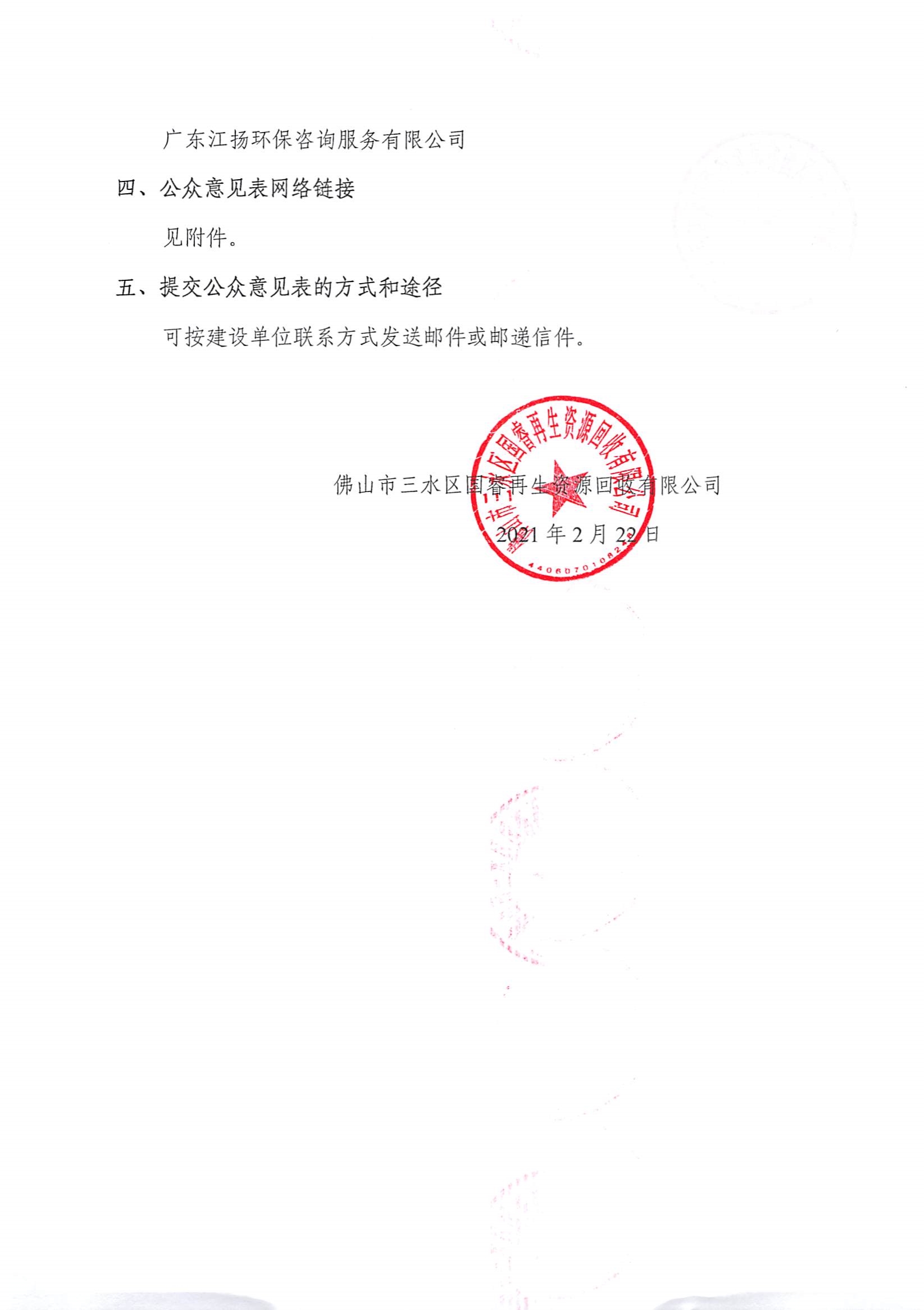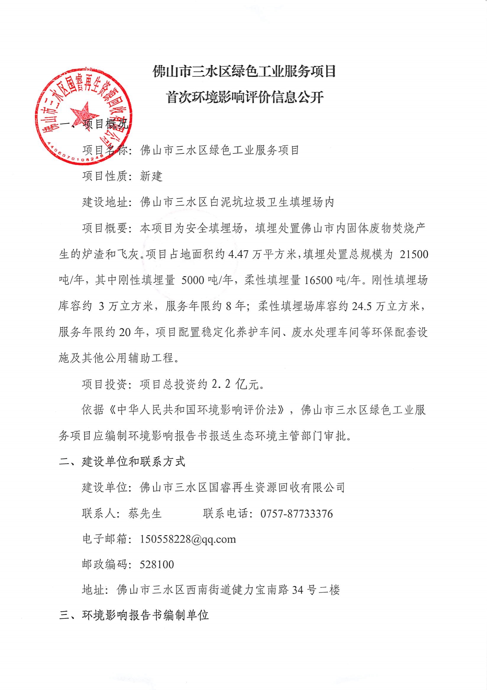 佛山市三水区绿色工业服务项目首次环境影响评价信息公开