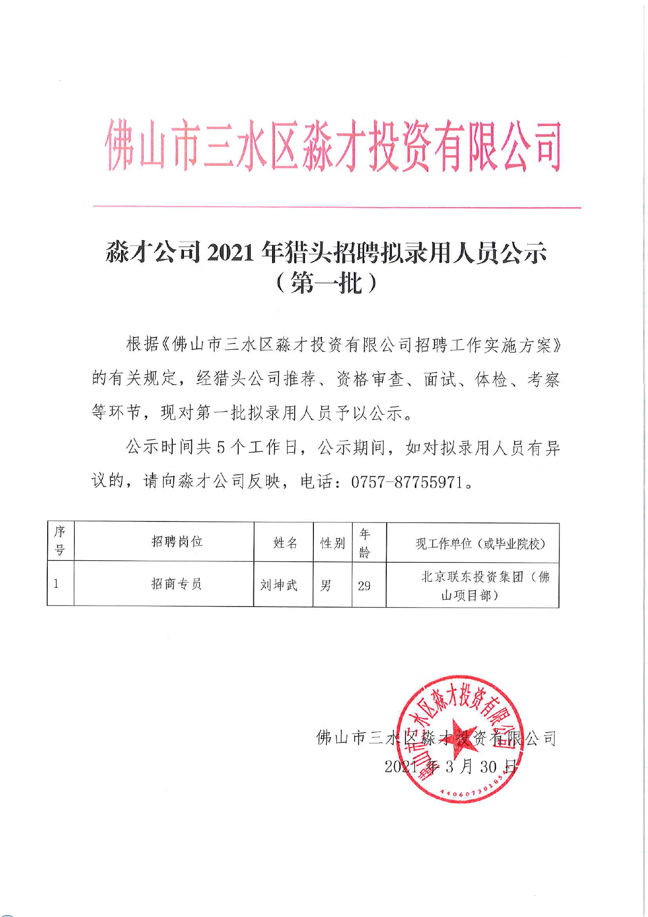 淼才公司2021年猎头招聘招商人员拟录用人员公示(第一批)