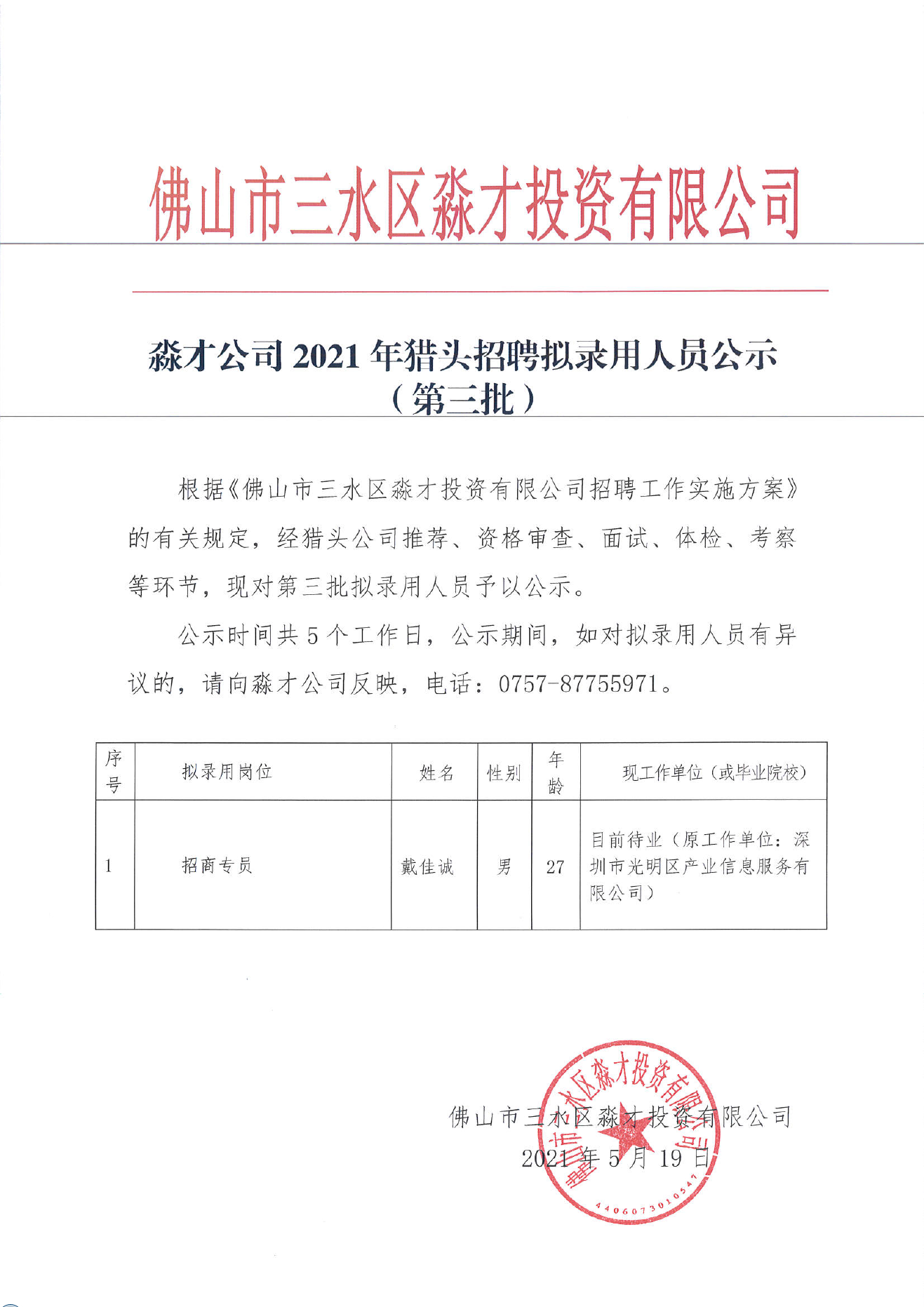 淼才公司2021年猎头招聘招商人员拟录用人员公示(第三批)