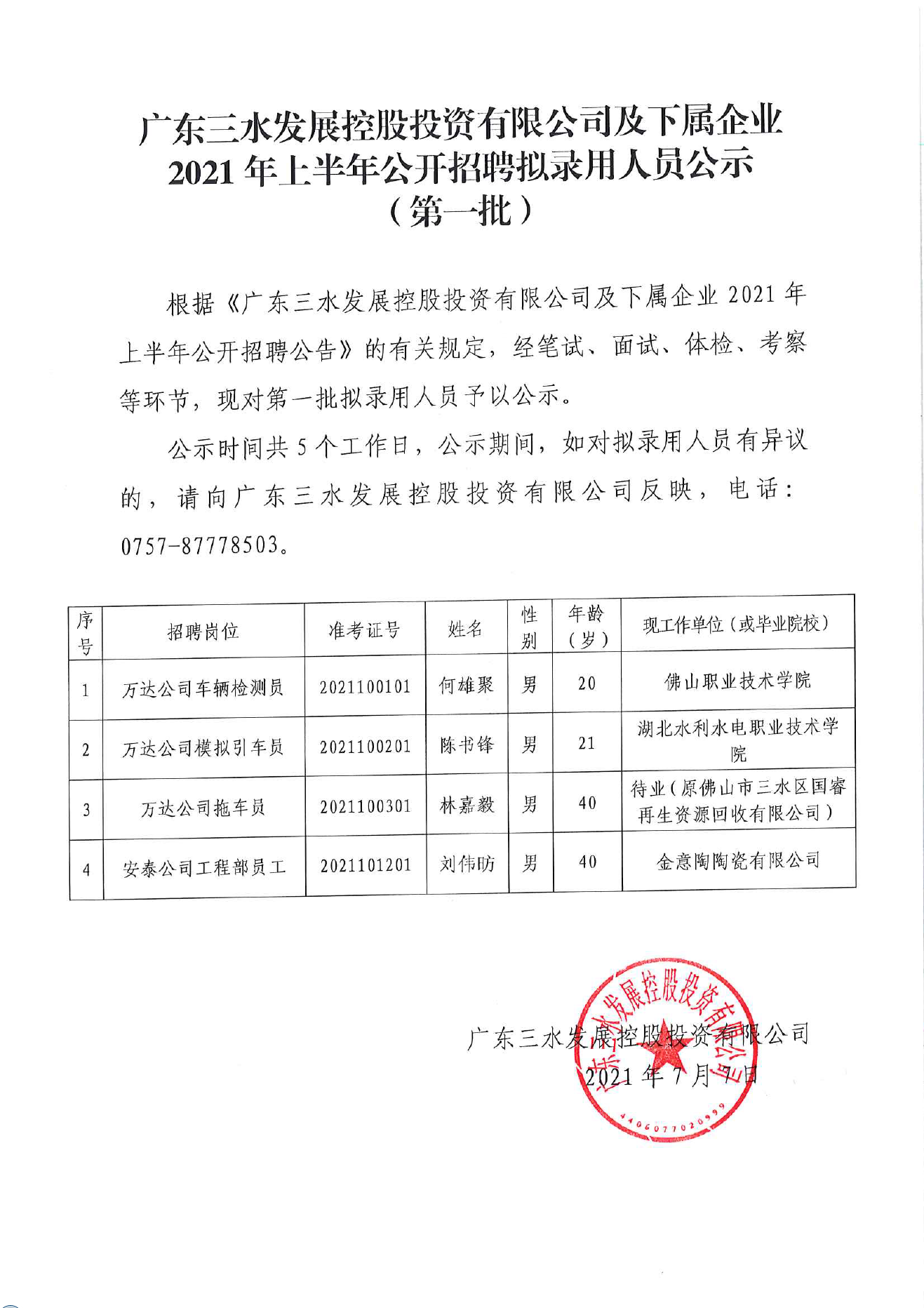 1946伟德官方网站及下属企业2021年上半年公开招聘拟录用人员公示(第一批)
