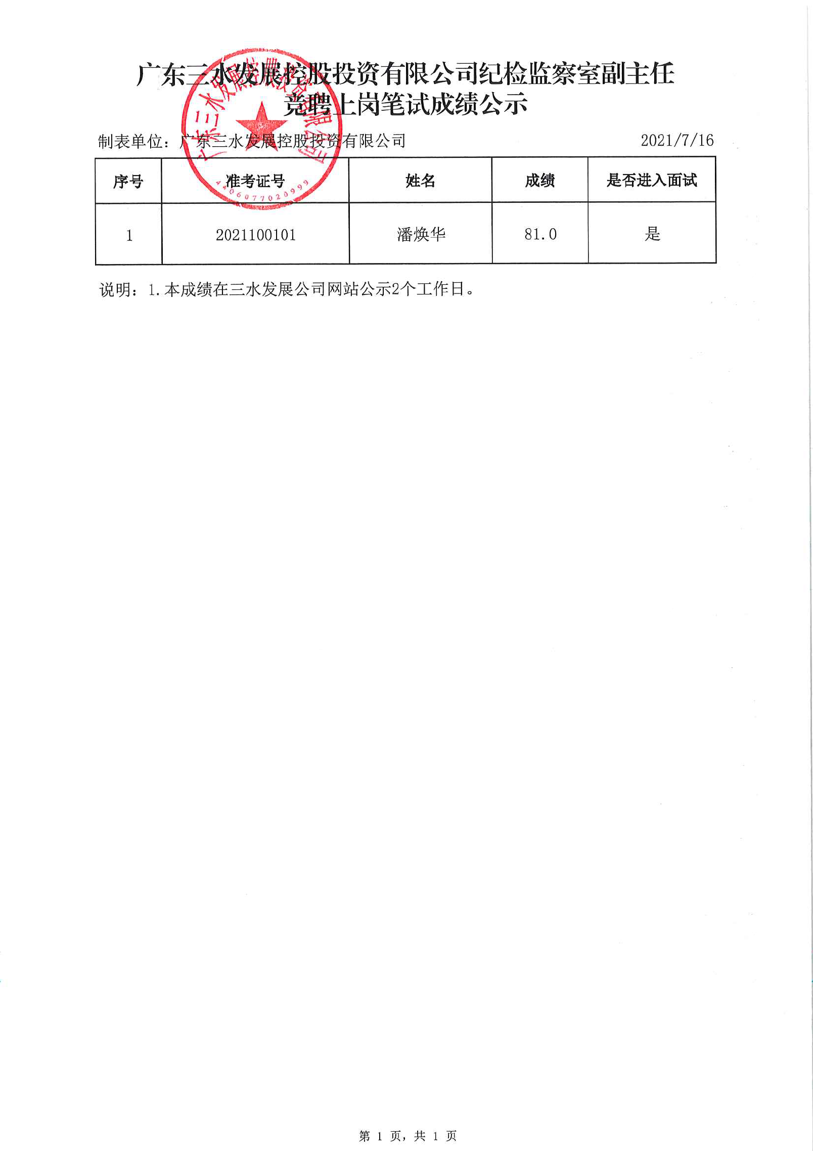 1946伟德官方网站纪检监察室副主任竞聘上岗笔试成绩公示