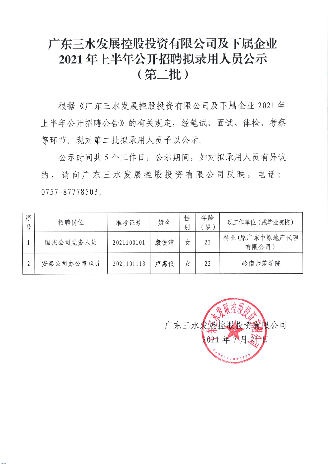1946伟德官方网站及下属企业2021年上半年公开招聘拟录用人员公示(第二批)