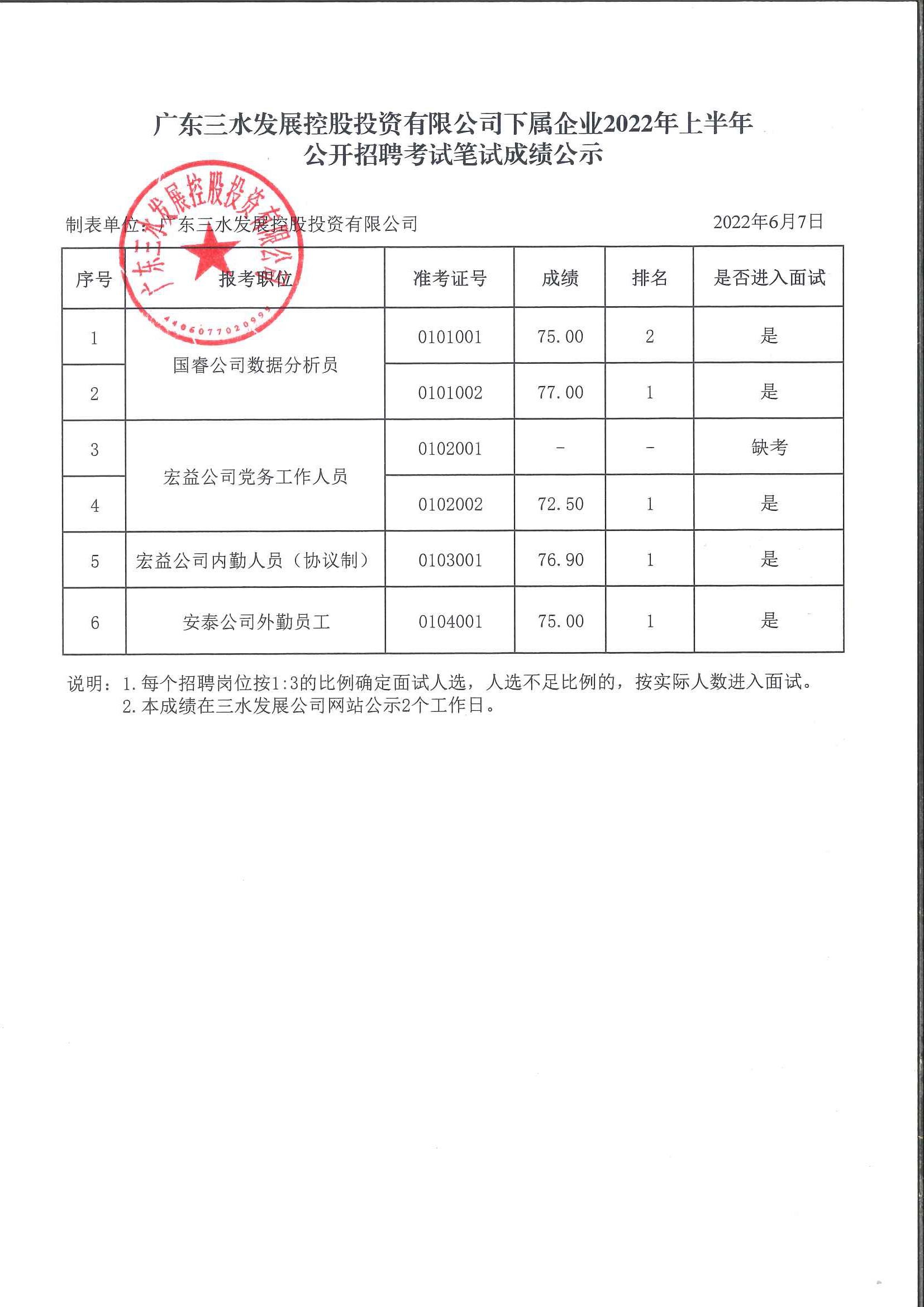 1946伟德官方网站下属企业2022年上半年公开招聘考试笔试成绩公示