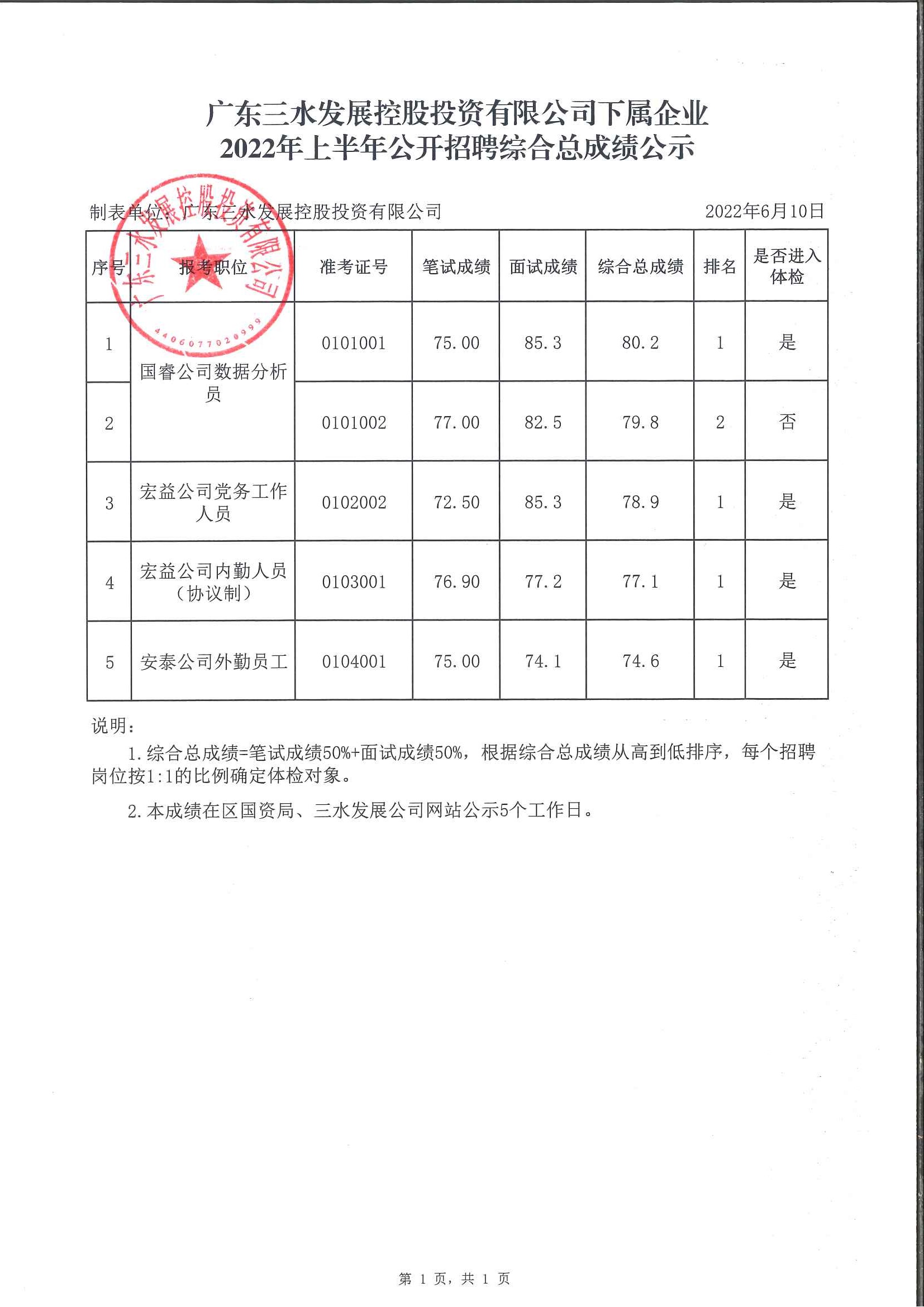 1946伟德官方网站下属企业2021年下半年公开招聘综合总成绩公示