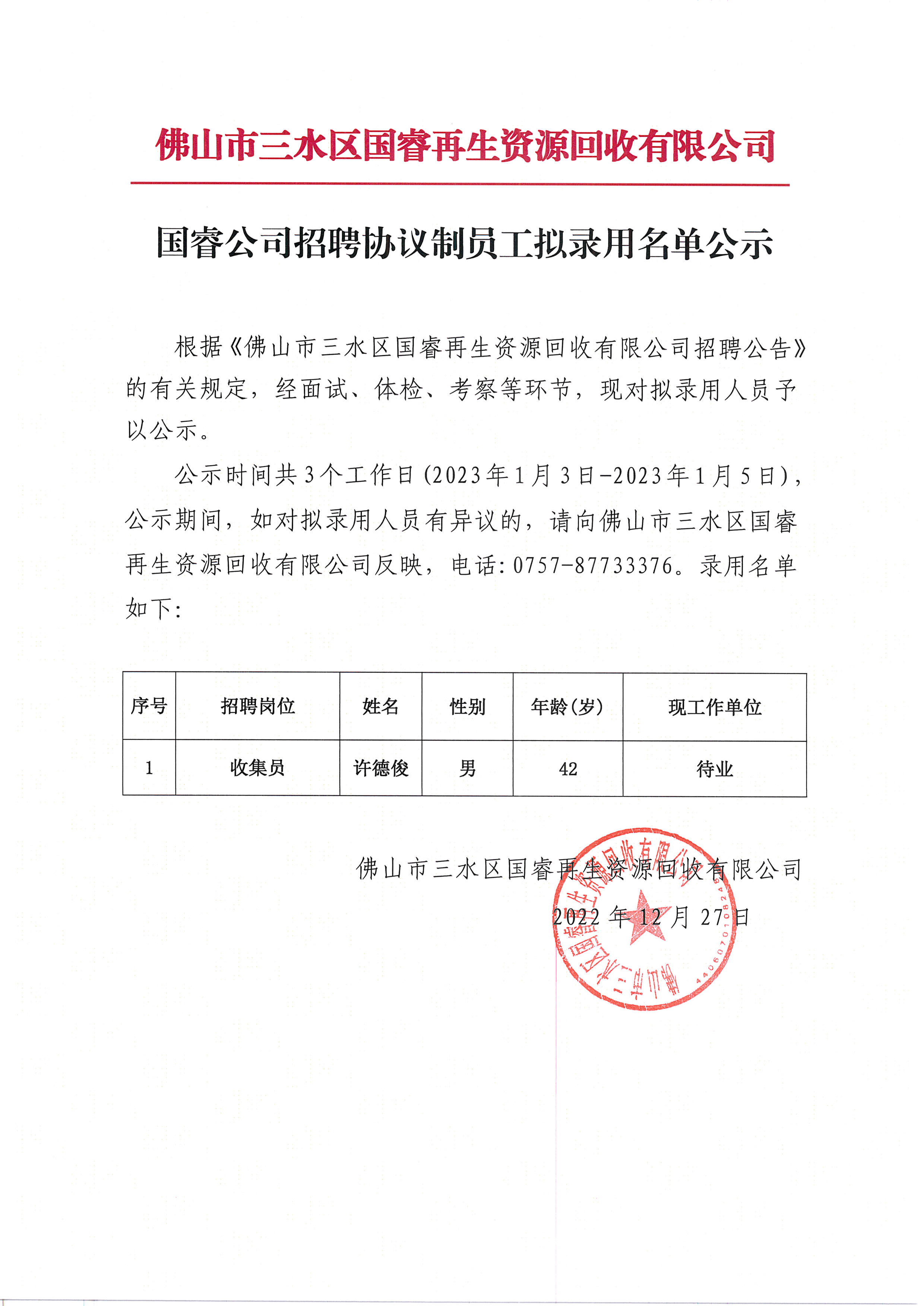 国睿公司招聘协议制员工拟录用名单公示