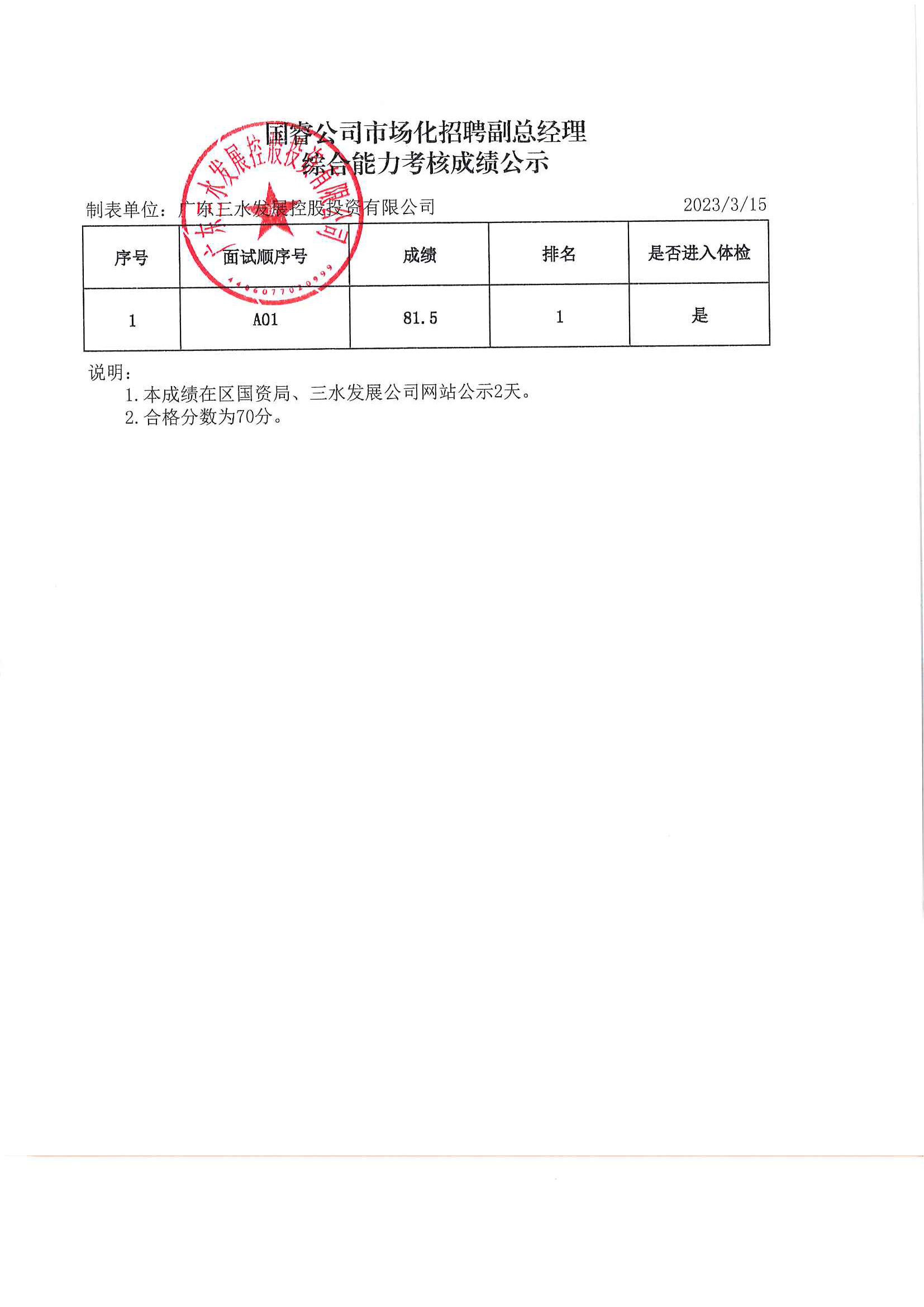 国睿公司市场化招聘副总经理综合能力考核成绩公示