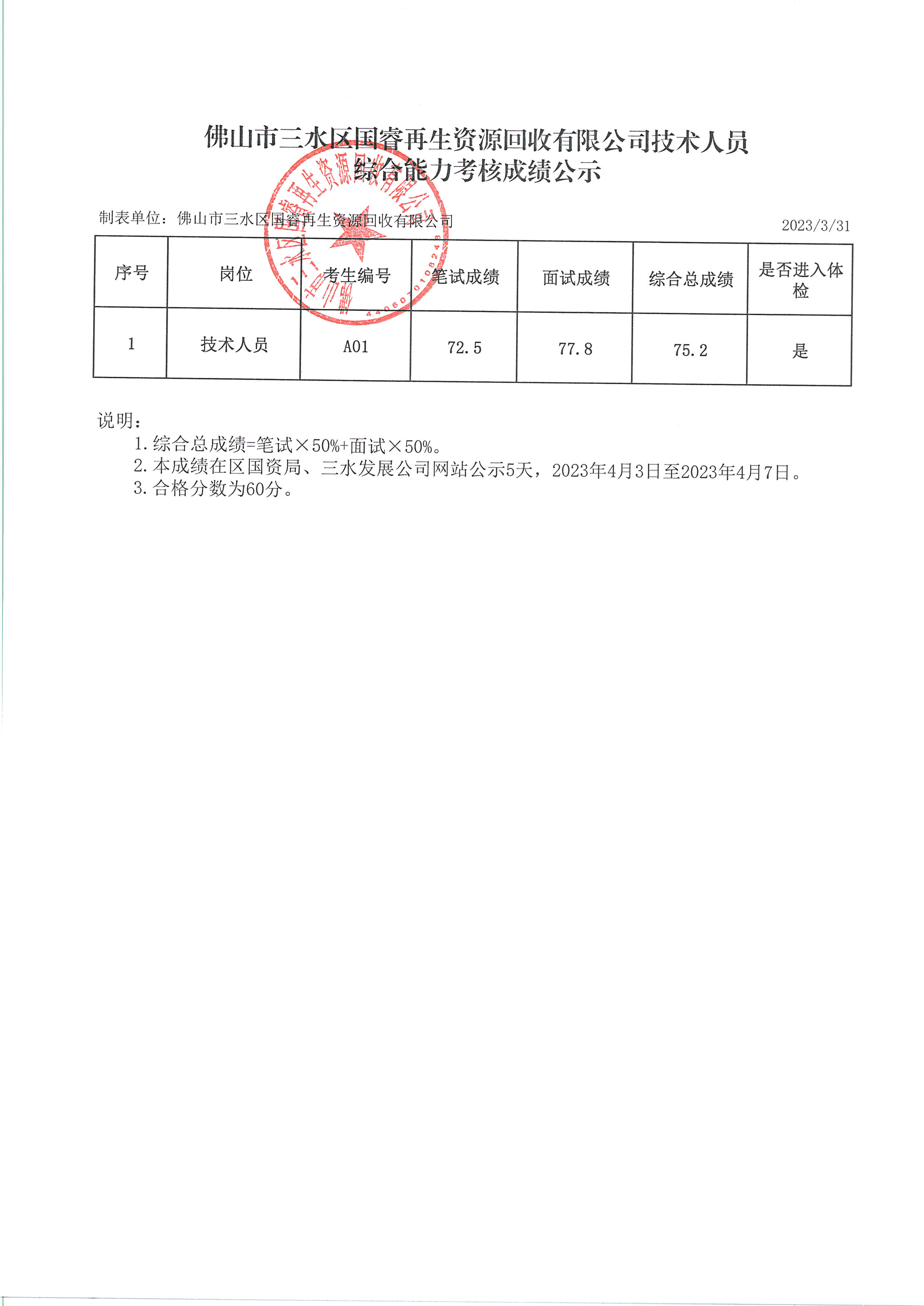 国睿公司绿色工业服务项目技术人员综合能力考核成绩公示