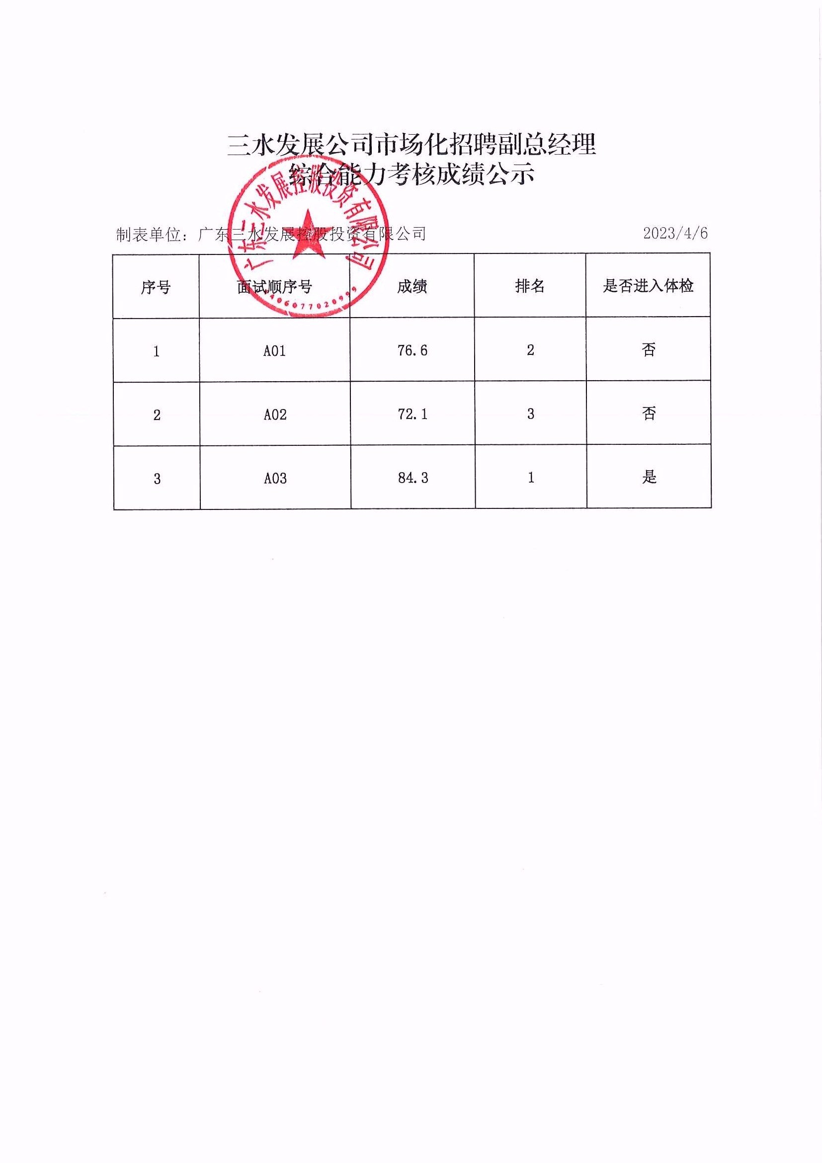 bv1946伟德官网公司市场化招聘副总经理综合能力考核成绩公示