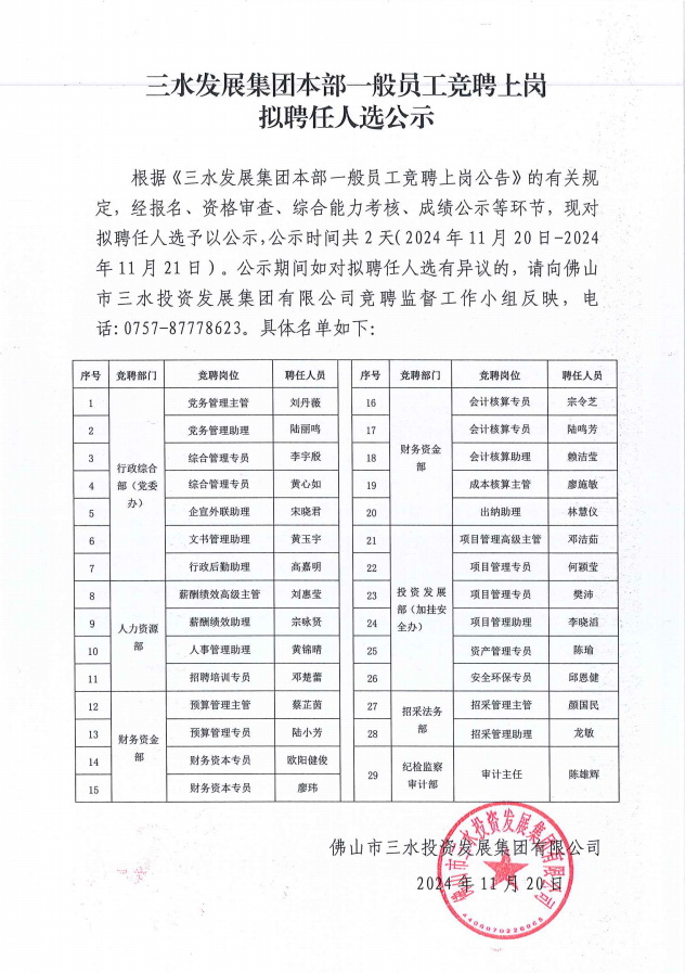 bv1946伟德官网集团本部一般员工竞聘上岗拟聘任人选公示