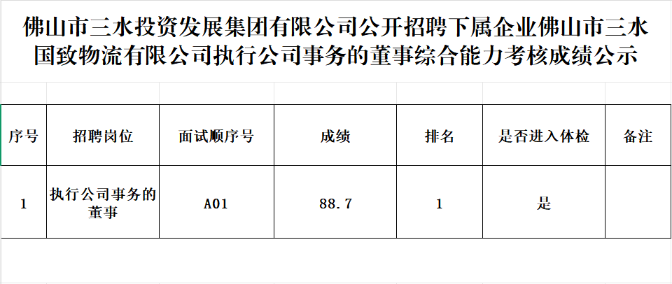 bv1946伟德官网集团公开招聘下属企业国致公司执行公司事务的董事综合能力考核成绩公示