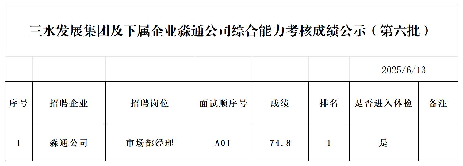 bv1946伟德官网集团及下属企业淼通公司综合能力考核成绩公示(第六批)