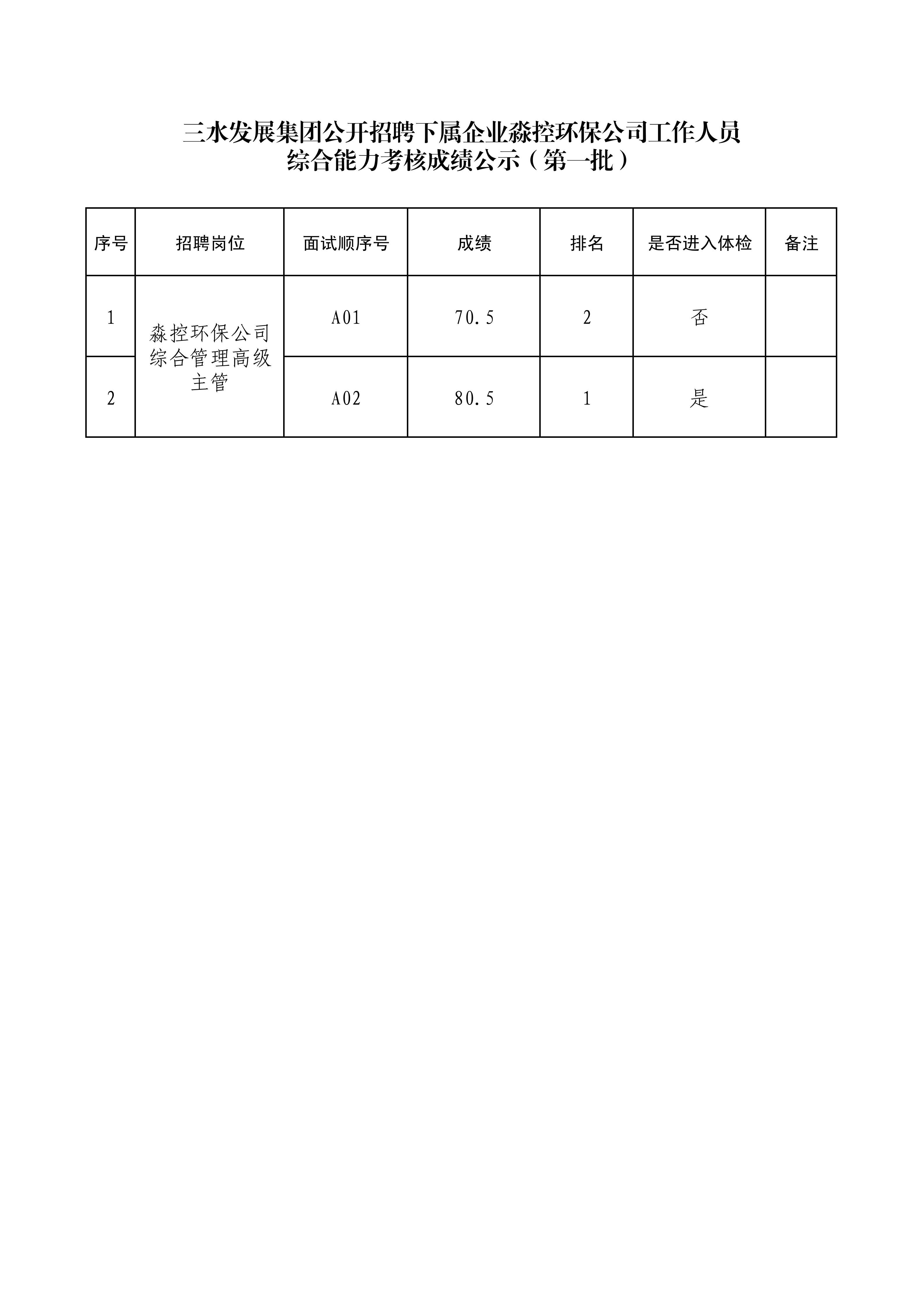 bv1946伟德官网集团公开招聘下属企业淼控环保公司工作人员综合能力考核成绩公示(第一批)