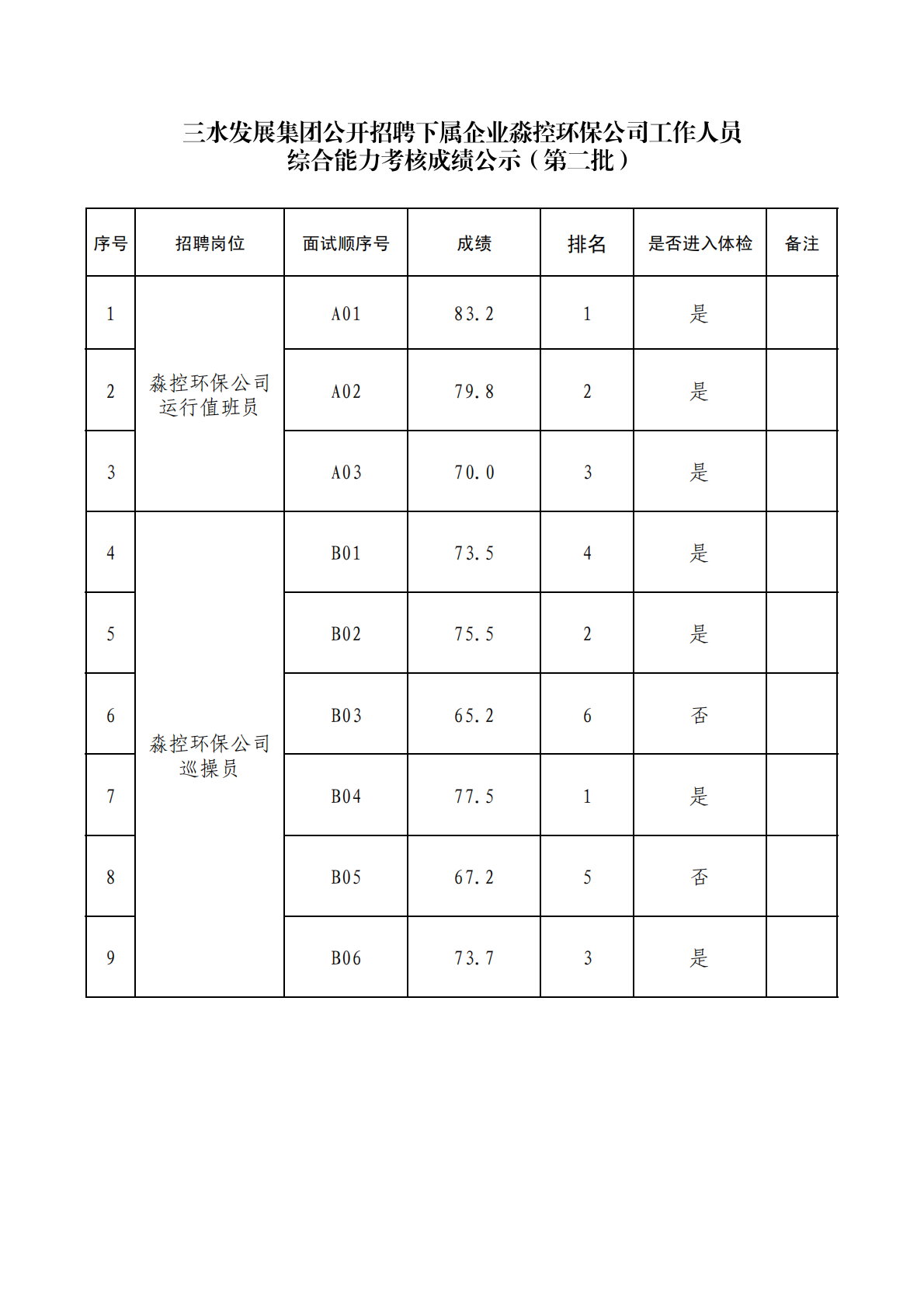 bv1946伟德官网集团公开招聘下属企业淼控环保公司工作人员综合能力考核成绩公示(第二批)